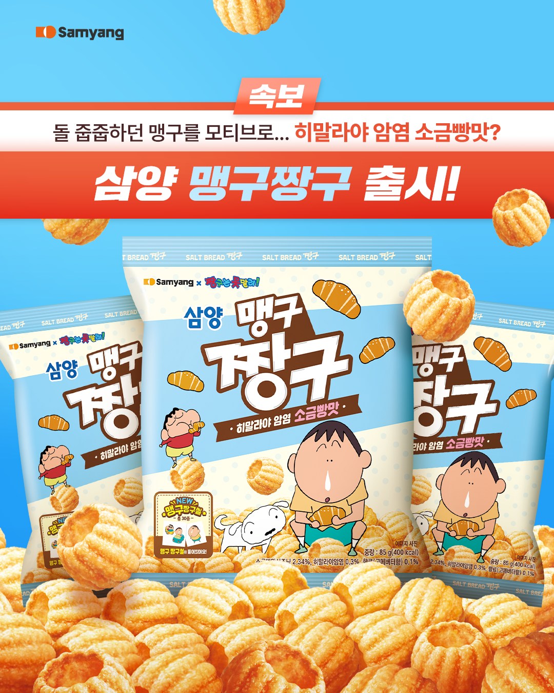 짱구는 가라! 맹구의 시대!💧 한결같은 표정으로 짱구 옆을 지키는 맹구가 드디어 주인공이 되었어요! 삼양에서 내는 짱구 과자에서 새로운 맛의 짱구를 출시하는데요. 제품 명에도 맹구가 붙고 패키지도 맹구가 메인 모델로 발탁된 느낌..! 기존의 달달한 맛과는 다른 히말라야 암염을 사용한 소금 빵맛이라고 해요. 게다가 맹구가 100% 등장하는 맹구짱구씰이 들어있다고..! 맹구덕후라면 퇴근길 맹구짱구 사냥에 나서는 걸 추천합니다. 그나저나 왜 짭짤한 소금빵 맛일까 했는데.... 맹구의 트레이드마크 콧물에 영감을 받았을까요..?. (이하 생략) http://bit.ly/45LoBkj