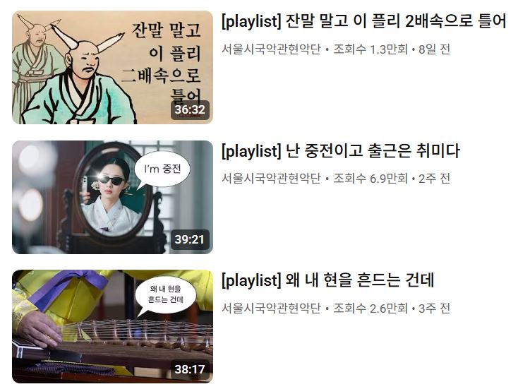난 중전이고 출근은 취미다👸 일전에 '클래식좀들어라' 유튜브 채널을 소개했어요. 재치있는 상황에 어울리는 클래식 음악을 선곡해 플레이리스트로 선보여 단숨에 많은 이들에게 클래식을 친숙하게 느끼게 해주었죠. 그런데 이번엔 국악 버전이 나왔습니다! 정확히는 서울시국악관현악단에서 연주했던 곡들을 엮어 플리로 만들었는데 썸네일부터 기존의 채널 영상과는 차별화된 모습 덕분에 많은 분들이 국악관현악 곡을 접하게 된 것 같아 숨은 국악오따꾸 앨리스도 뿌듯했답니다! 앨리스의 추천 곡은 최지혜 작곡가의 메나리토리에 의한 국악관현악 '감정의 집'입니다!(앨리스의 최애 작곡가님..! 곡에서 사극 하나 뚝딱! 하는 서사가 느껴지는 것이 특징이랍니다!) 개인적으로 이 작곡가님의 또 다른 곡, 첼로 협주곡 '미소(微笑)'도 좋으니까 꼭 한번 들어보는 걸 추천합니다!(국악, 은근히 클래식과도 찰떡..!) 서울시국악관현악단 플레이리스트 http://bit.ly/4mKvYyj Cello Concerto ‘미소(微笑)’ https://bit.ly/4g1LLWY