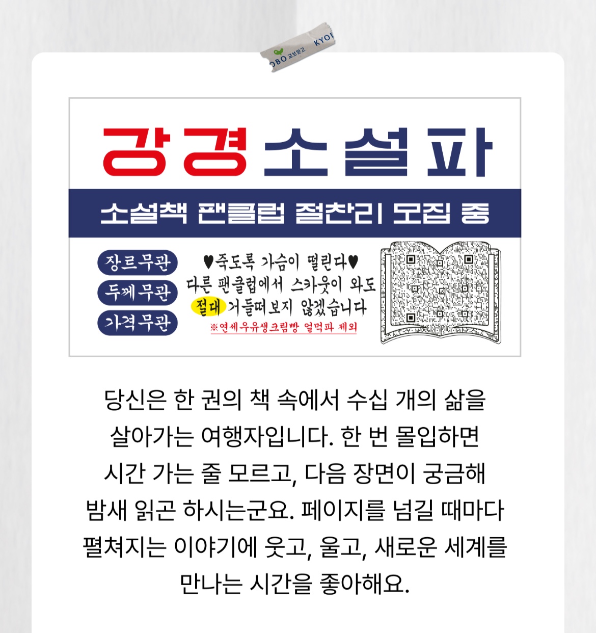 교보문고 맛! 궁금해 허니~🥞 교보문고 맛이 있다면 어떤 맛일까요? 상상이 가세요? 교보문고는 이전 교보문고의 향기에 착안한 디퓨저와 향기 굿즈를 선보였었는데요. 이번엔 향기에서 끝나지 않고 맛으로 돌아왔습니다! 편의점 CU에서 선보이는 연세우유생크림빵에서 그 맛을 찾아볼 수 있는데요. 빵뿐만 아니라 책읽는 빵먹단 테스트 결과 유형의 명함도 함께 들어가 있답니다. 이거, 가을 독서용 책갈피로 딱! 아니겠어요? 빵도 먹고 명함도 얻고 심테도 해보고 일석삼조! 오늘 오후 간식은 생크림 빵~~