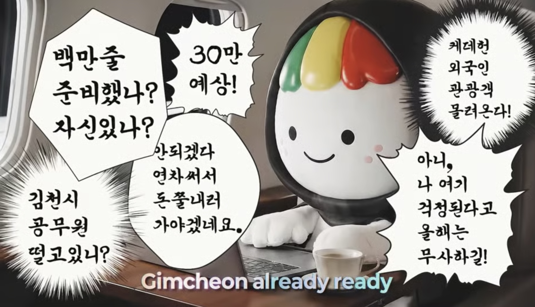 작년 1회를 맞았던 김천김밥축제가 올해는 칼을 갈고 돌아왔다는 소식이에요! 프랜차이즈 음식점의 줄임말이라는 것 외에 김밥과의 접점이 없던 김천이 김밥축제의 도시로 거듭나기까지는 불과 1년 남짓한 시간이 걸린 것 같아요. 작년에는 준비한 김밥이 빠르게 소진되어 리벤지를 하겠노라 결심한듯한 김천김밥축제, 올해는 제대로 준비한 것 같은데 마침 케이팝 데몬 헌터스의 영향으로 김밥의 위상(?)이 더욱 고공행진 중! 과연 김천시는 무사히 축제를 마칠 수 있을까요? 김밥큐레이터인 김밥집과 콜라보한 패키지를 선보이고 서울에서 김천김밥축제 장소까지 가는 셔틀버스를 운영하는 등 콘텐츠를 다양화하려고 한 모습이 눈에 띕니다! 10월 25일부터 이틀간 열리는 김밥축제! 지금부터 갈 준비 해보자고요..!!!